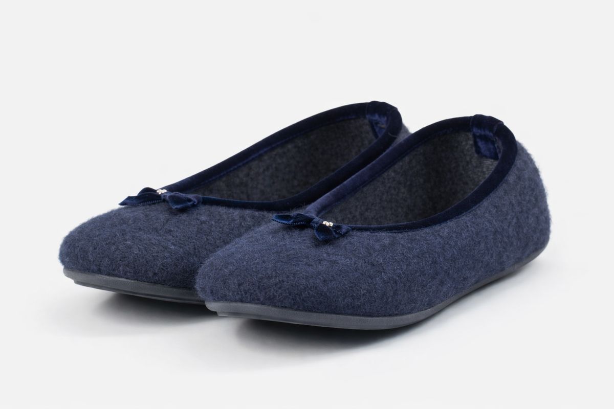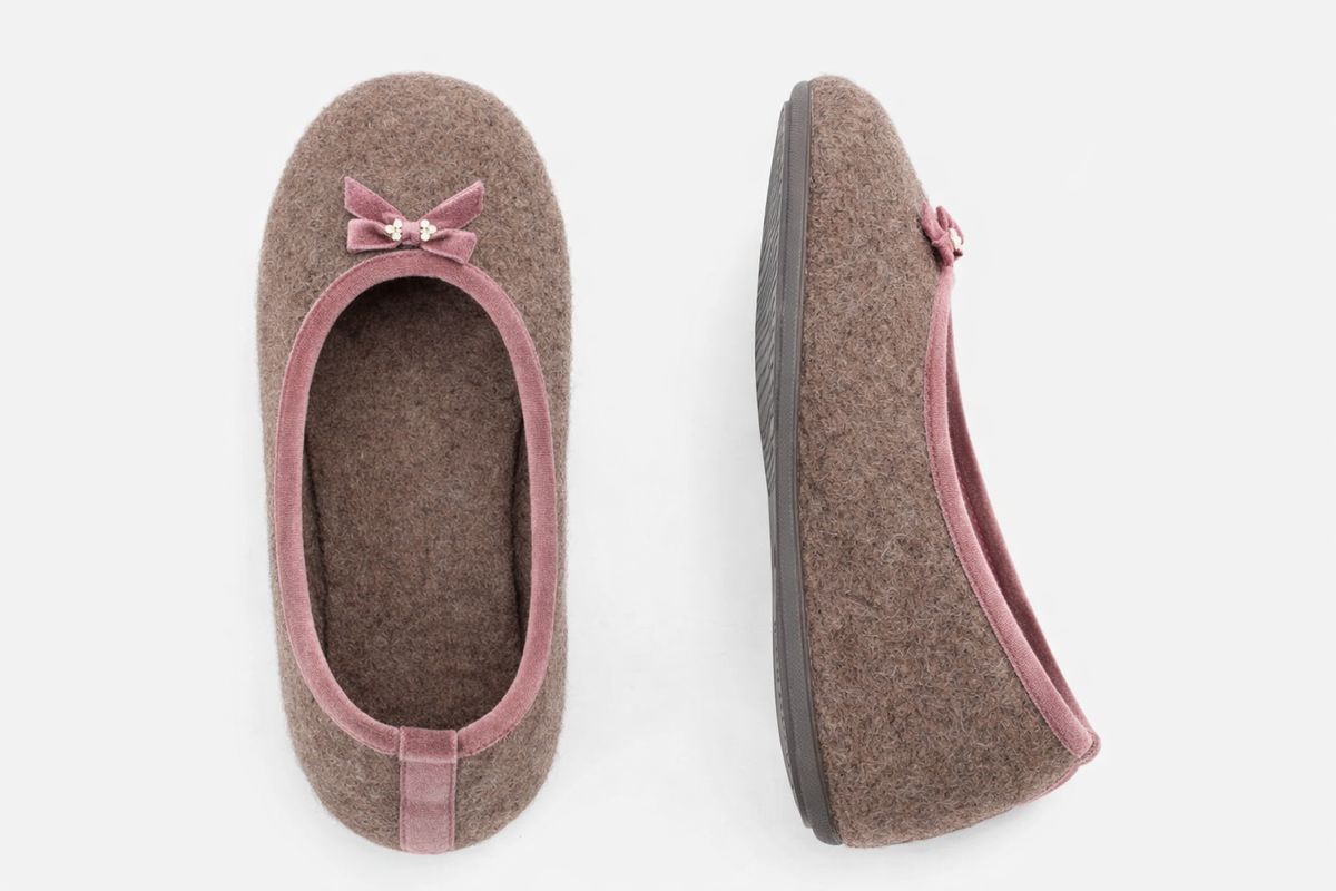 Handgefilzte Ballerinas aus reiner kirgisischer Bergwolle. Federleicht, natürlich warm, mit edler Samt-Einfassung und Zierschleife.