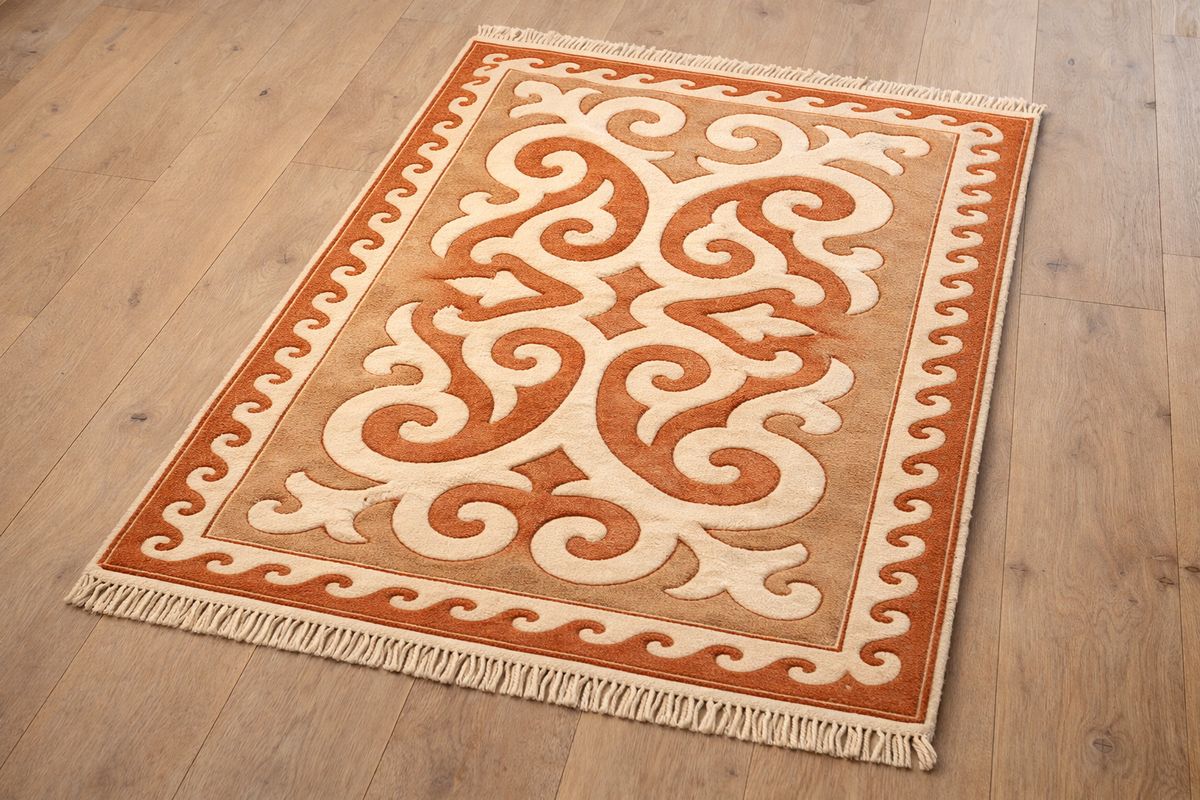 Unsere Teppiche entstehen nach kirgisischer Tradition, bei der gefärbte Wollschichten geschnitten und zu geometrischen Mustern zusammengesetzt werden. Jedes Muster trägt Bedeutung — Widderhörner für Schutz, Spiralen für Unendlichkeit, Berge für Stärke. Natürliche Farbstoffe aus Pflanzen der Steppe geben jedem Teppich seine eigene Seele.