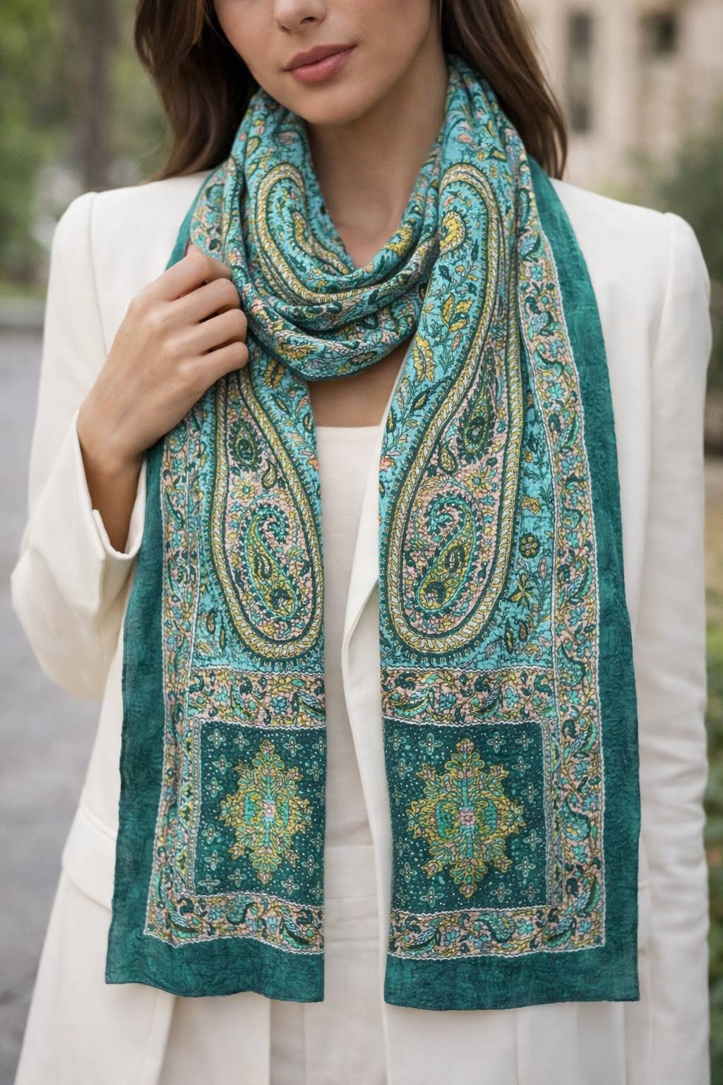 100% kirgisische Merinowolle, handgewebt in drei bis vier Tagen. Federleicht und trotzdem warm — ein Schal, der dich durch alle Jahreszeiten begleitet, ob im Berliner Winter oder auf der Sommerterrasse.